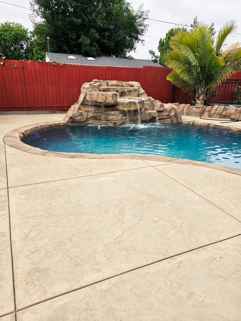 Indulge in the soothing sounds of cascading water with our custom water features. Enhance your outdoor living space with our elegant rock waterfall features and pool designs.